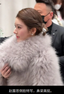 造型的成功不仅在于单品的搭配,更在于赵露思对气质的精准把控。她没有因为穿皮草就刻意端着,反而保持着自然灵动的状态。活动现场,她会主动挥手问候粉丝,弯腰倾听提问,甚至眼尖地夸赞粉丝的发色,这种接地气的互动让贵气中多了几分亲和力。当她穿着这套造型行走时,皮草轻轻晃动,裙摆随之摆动,CCD镜头捕捉到的动态画面,让优雅有了流动的美感。