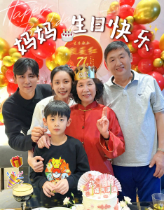 这组全家福里的每个细节,都是幸福的注脚。秋瓷炫肩膀上佩戴的“生日冠军”条幅,是于晓光偷偷准备的小惊喜;蛋糕上的奶油花朵,是啪嗒跟着烘焙课学做的;就连背景里的写真海报,都是公婆特意定制的。没有昂贵的礼物,却处处透着“把你放在心上”的诚意。