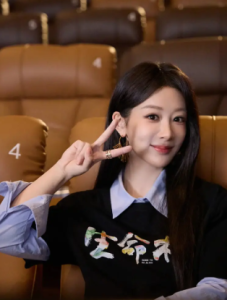 造型的精妙之处,在于每一处细节的平衡感。上衣选用印有剧名字样的深色文化衫作为内搭,外叠简约黑T,领口与下摆的层次露出,打破了纯黑造型的沉闷,又巧妙呼应了新剧宣传的主题,自带亲和力。下身搭配的黑色皮裙利落挺括,长度恰到好处地修饰腿部线条,皮质的酷飒质感与上身的休闲氛围形成反差,不刻意扮嫩也不刻意装酷,精准卡在少女感与成熟感之间。